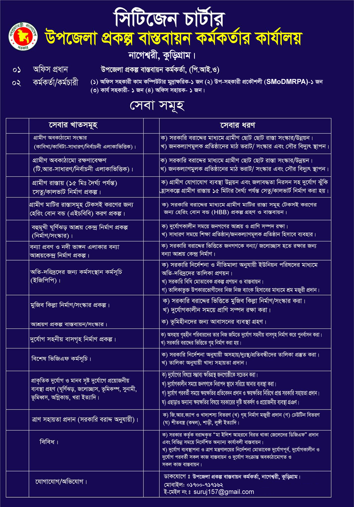 উপজেলা পর্যায়ে কাজ করে এমন দপ্তরগুলোর মধ্যে অন্যতম এবং উলেখযোগ্য অফিস হচ্ছে উপজেলা প্রকল্প বাস্তবায়ন অফিস । স্বাধীনতাত্তোর ১৯৭৩-৭৪ সালে সে সময়ে সার্কেল অফিসারের কার্যালয়ে ত্রাণ বিভাগ চালু করা হয়। ধীরে ধীরে এর কার্যক্রম বৃদ্ধি পেতে থাকে। বর্তমানে বাংলাদেশের সকল উপজেলায় উপজেলা প্রকল্প বাস্তবায়ন অফিস রয়েছে । যাহার মধ্যে বিভিন্ন প্রকল্প চালু রয়েছে ।টি,আর,কাবিখা/কাবিটা,ভিজিএফ,মানবিক সহয়তা,ব্রীজ,এইচবিবি,বন্যা আশ্রায়ণ প্রকল্প,দুযোর্গ সহনীয় বাসগৃহ নির্মাণ,মুজিব কেল্লা নির্মাণ ও সংস্কার, সকল প্রকার ত্রাণ কার্যক্রম রয়েছে।