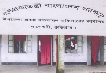 নাগেশ্বরী উপজেলা প্রশাসন ভবনের নীচ তলায় সিঁড়ির দক্ষিণ পার্শে।